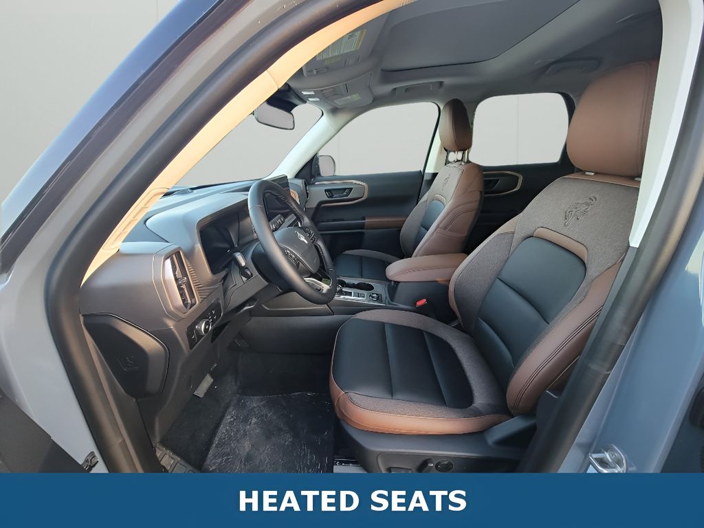 Discover the 2025 Ford Bronco Sport Outer Banks 4WD â" a rugged, refined compact SUV ready for city streets and off-road trails. Powered by a responsive 3-cylinder 1.5L gasoline engine, this Ford Bronco Sport balances efficient performance with confident capability. The Outer Banks trim delivers premium comfort and advanced technology, including adaptive cruise control for relaxed highway driving and hands-free Bluetooth for seamless phone and audio connectivity. Enjoy cold-weather convenience with a heated steering wheel and remote start, perfect for warming the cabin before you head out. Rear parking sensors provide extra confidence when maneuvering into tight spots, while the 4WD system enhances traction on slippery or uneven surfaces. Spacious seating and smart cargo solutions make this Ford Bronco Sport practical for daily commutes, weekend adventures, and active lifestyles. Located in Mooresville, IN, this 2025 Ford Bronco Sport Outer Banks is competitively priced and represents the best price in the area â" an outstanding value for buyers seeking capability and comfort. Whether you're navigating suburban roads or exploring backcountry routes, this Ford Bronco Sport combines style, technology, and capability in a compact package. Contact us to schedule a test drive in Mooresville, IN, and experience the performance and features that make this 2025 Ford Bronco Sport Outer Banks a top choice for adventurous drivers.