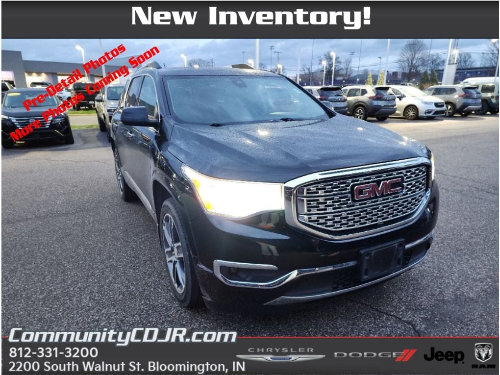 Discover exceptional value with this 2019 GMC Acadia Denali, now available in Bloomington, IN. This premium midsize SUV pairs a smooth 3.6L V6 gasoline engine with confident front-wheel drive, delivering a refined balance of power and efficiency for daily commuting or weekend travel. The Denali trim brings upscale comfort and technology, including rich leather seats that surround passengers in luxury on every journey. Stay connected and on course with factory navigation, while advanced safety features help protect you and your passengers. Cross-traffic alert and rear parking sensors enhance situational awareness in tight spaces and busy lots, and adaptive cruise control keeps highway driving more relaxed and secure. Thoughtful interior appointments and flexible cargo space make this GMC Acadia Denali ideal for families, professionals, and anyone who values capability with premium touches. This vehicle has been carefully inspected and maintained to meet high standards, and it's priced to move â" offering the best price in the area for comparable models. Located in Bloomington, IN, this GMC Acadia is ready for test drives and immediate delivery. If you're seeking a luxurious, tech-forward SUV with strong performance and exceptional value, this 2019 GMC Acadia Denali is a standout choice. Contact us today to schedule your appointment and experience this premium SUV for yourself.