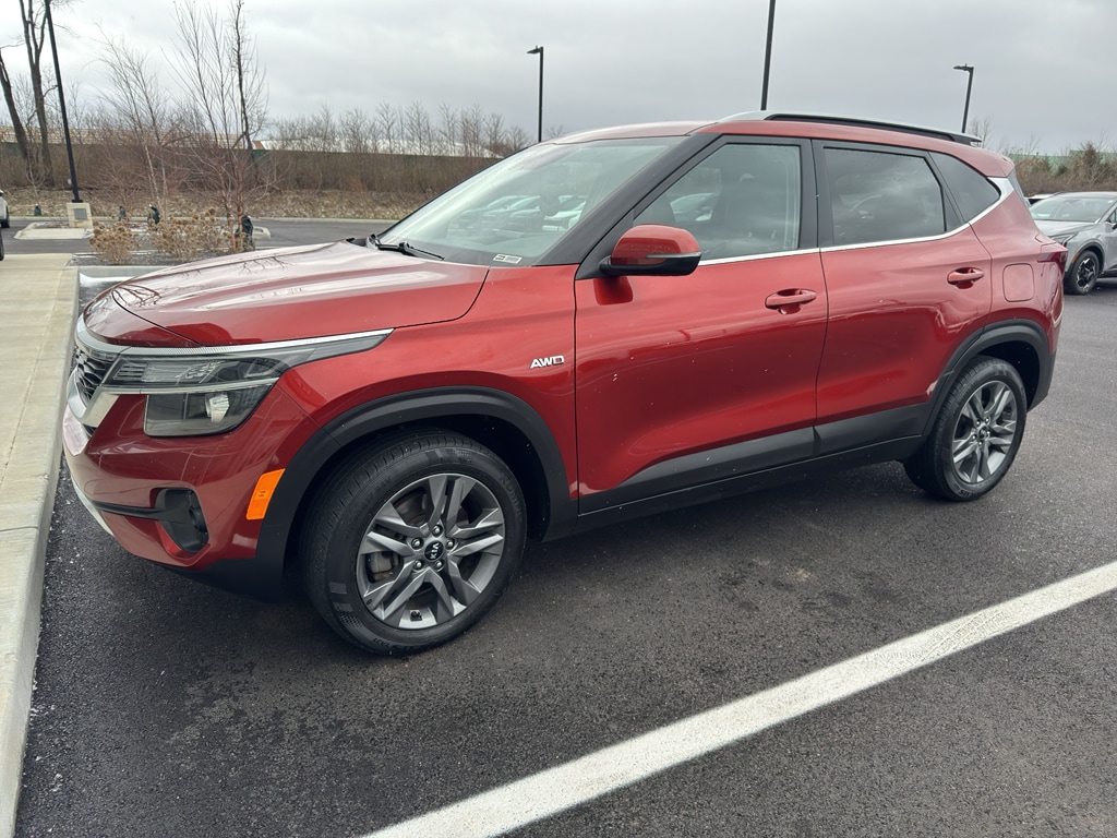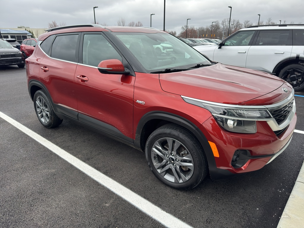 This unit is equipped with all wheel drive. The Kia Seltos comes equipped with Android Auto for seamless smartphone integration on the road. Apple CarPlay: Seamless smartphone integration for this small suv - stay connected and entertained on the go! It has an automatic transmission. Protect the vehicle from unwanted accidents with a cutting edge backup camera system. Easily set your speed in it with a state of the art cruise control system. Increase or decrease velocity with the touch of a button. The Electronic Stability Control will keep you on your intended path. This vehicle has a 4 Cyl, 2.0L high output engine. This model has fog lights for all weather conditions. This Kia Seltos is equipped with a gasoline engine. This vehicle features a hands-free Bluetooth phone system. The Kia Seltos's Lane Departure Warning keeps you safe by alerting you when you drift from your lane. The leather seats in this model are a must for buyers looking for comfort, durability, and style. The vehicle shines like the sun with a vibrant orange exterior finish. The perfect balance of space and size. it cruises through the city with ease.