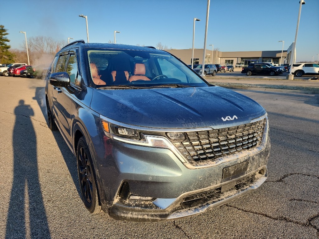Discover exceptional value with this 2024 Kia Carnival SX, a versatile and stylish people-mover located in Bloomington, IN. With only 40,975 miles, this Kia Carnival pairs a smooth 3.5L V6 gasoline engine with front-wheel drive for confident performance, refined highway cruising, and strong passing power. The SX trim delivers a premium cabin loaded with features: leather seats for comfort, an intuitive navigation system to guide your journeys, and hands-free Bluetooth for seamless connectivity on the go. Safety and convenience come standard with advanced Collision Avoidance technology and a back-up camera to assist with parking and tight maneuvers, helping protect passengers and pedestrians alike. The Kia Carnival's spacious interior and thoughtful ergonomics make it ideal for families, commuters, and road trips, offering ample cargo flexibility and versatile seating configurations. Priced to move, this 2024 Kia Carnival SX offers the best price available in the Bloomington areaâ"an outstanding combination of reliability, modern tech, and comfort at a highly competitive value. Schedule a test drive today to experience the responsive V6 engine, refined ride, and suite of driver-assist features in person. Located in Bloomington, IN, this Kia Carnival is ready to serve your daily driving needs with style and confidence. Contact us for availability and financing options.