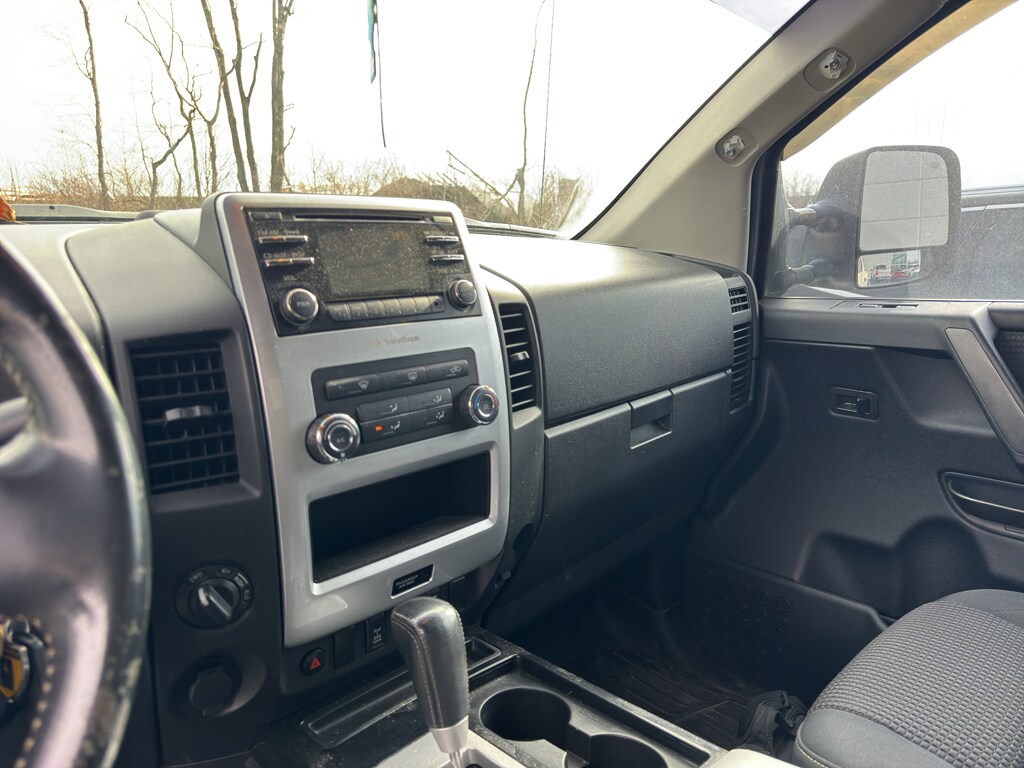 The state of the art park assist system will guide you easily into any spot. See what's behind you with the back up camera on the Nissan Titan. This vehicle features a hands-free Bluetooth phone system. When you encounter slick or muddy roads, you can engage the four wheel drive on the vehicle and drive with confidence. This 1/2 ton pickup features a HomeLink System. This vehicle shines with clean polished lines coated with an elegant white finish. The gas and brake pedals adjust allowing you to fine-tune them for personal fit and comfort. This 1/2 ton pickup has a V8, 5.6L high output engine. Set the temperature exactly where you are most comfortable in this vehicle. The fan speed and temperature will automatically adjust to maintain your preferred zone climate. The high efficiency automatic transmission shifts smoothly and allows you to relax while driving. This 1/2 ton pickup can run on either gasoline or E85 fuel.
