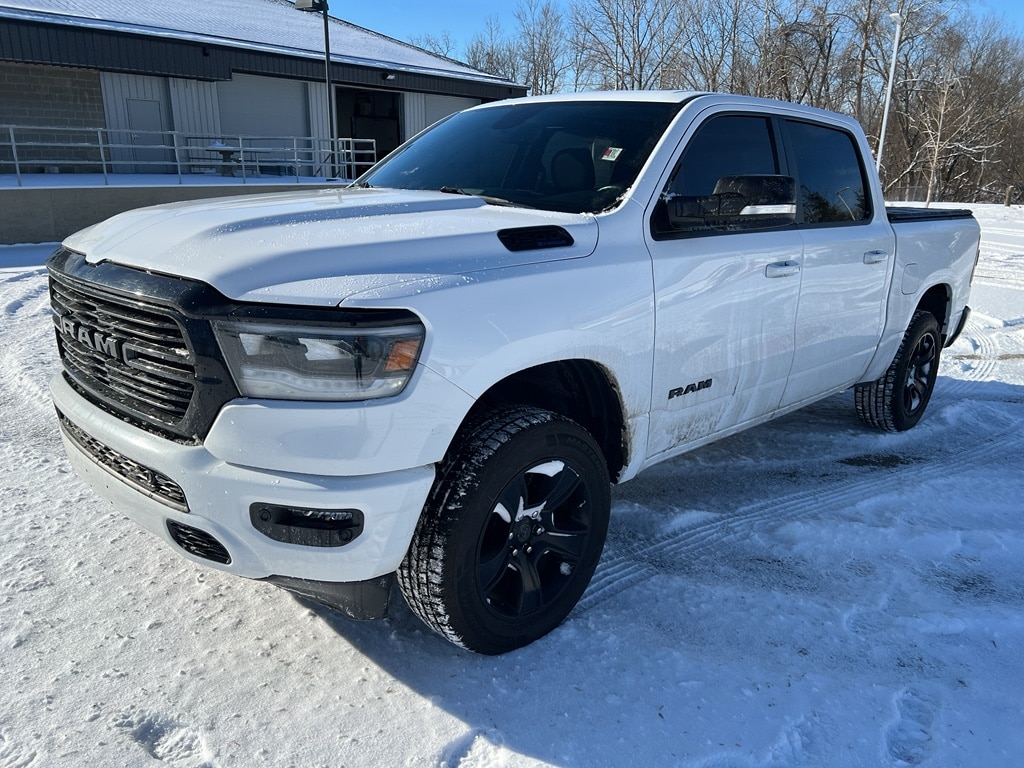 Fresh on the lot in Bloomington, IN â" a rugged and reliable 2021 Ram 1500 Big Horn with only 38,857 miles. This 4WD powerhouse is equipped with the legendary 5.7L V8 gasoline engine, delivering the torque and towing capability you need for work, weekend adventures, and everything in between. With a confident ride height and durable construction, the Big Horn blends comfort and capability in an attractive package. This Ram 1500 comes loaded with practical tech and convenience features: Navigation to keep you on course, Remote Start for warm or cool comfort before you climb in, and Hands Free Bluetooth to stay connected safely while driving. Back-Up Camera and Rear Parking Sensors make parking and hitching a trailer simple and stress-free. The cabin offers supportive seating and the thoughtful ergonomics Ram is known for, plus ample cargo and bed utility for gear and tools. Mileage is low for the year, condition is excellent, and this truck is priced to move â" it's the best price around for a 2021 Ram 1500 Big Horn with these specs in the area. Located in Bloomington, IN, this ready-to-drive 4WD V8 truck is ideal for drivers who want capability without compromise. Contact us to schedule a test drive and confirm availability â" this Big Horn won't last long at this price.