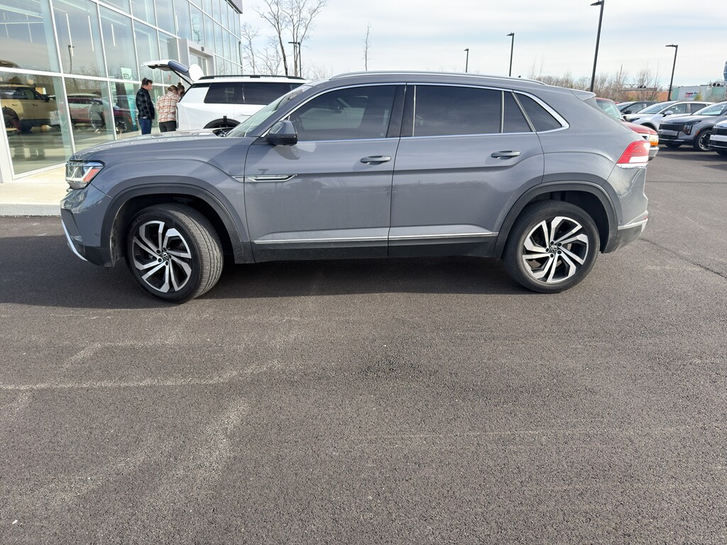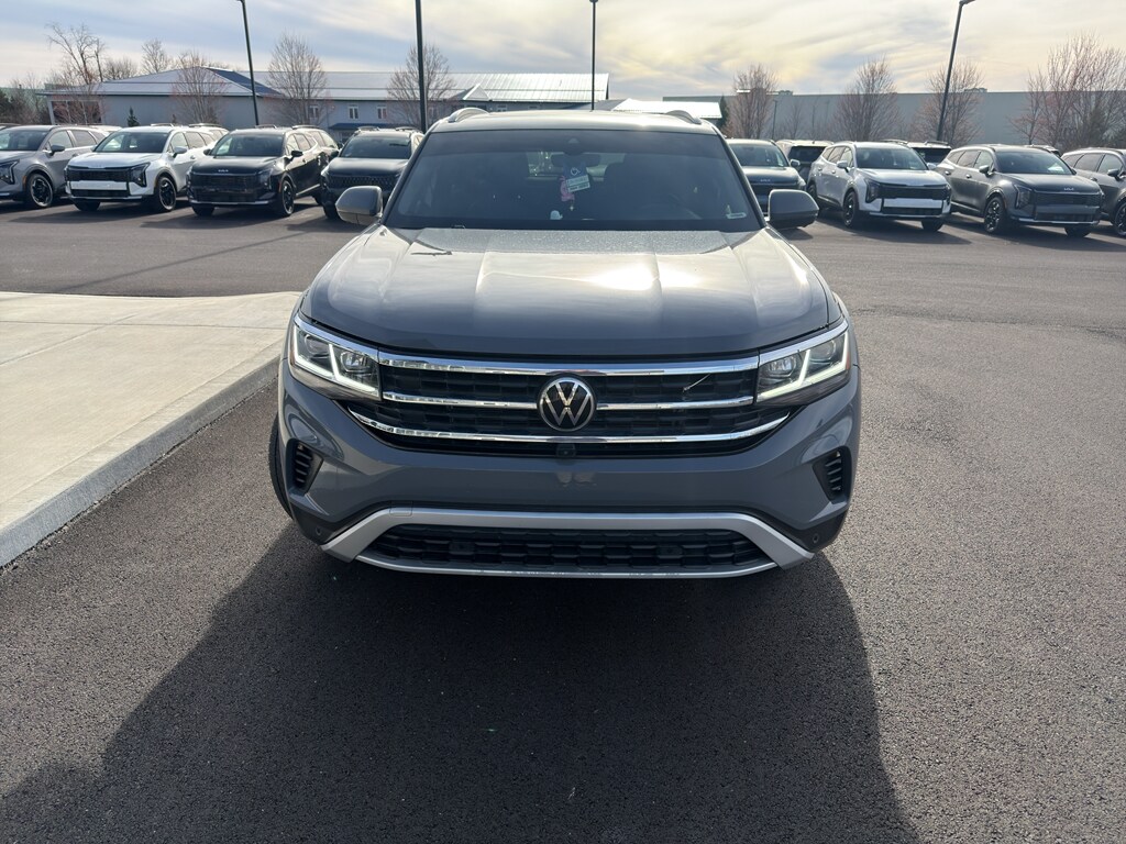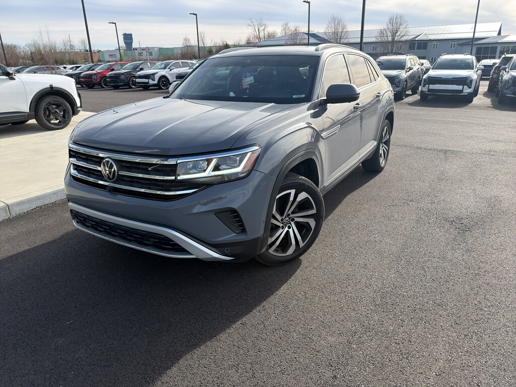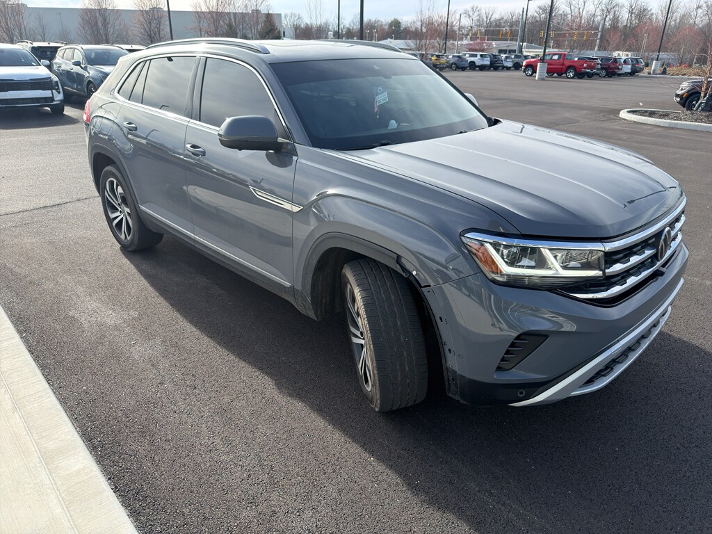 Enough room to carry all your cargo, passengers and equipment on a long road trip. Offering a ride height that is above most other vehicles, this vehicle has great visibility on the road. It has automated speed control that adjusts to maintain a safe following distance, enhancing highway driving convenience. This model is equipped with all wheel drive. The Volkswagen Atlas Cross Sport comes equipped with Android Auto for seamless smartphone integration on the road. This vehicle offers Apple CarPlay for seamless connectivity. The high efficiency automatic transmission shifts smoothly and allows you to relax while driving. Protect the vehicle from unwanted accidents with a cutting edge backup camera system. Set the temperature exactly where you are most comfortable in the Volkswagen Atlas Cross Sport. The fan speed and temperature will automatically adjust to maintain your preferred zone climate. This Volkswagen Atlas Cross Sport features cruise control for long trips. The vehicle has a V6, 3.6L high output engine. The vehicle's Forward Collision Warning system alerts the driver to potential front-end collisions, enhancing safety. Enjoy the tried and true gasoline engine in it. The vehicle projects refinement with a racy metallic gray exterior. Bluetooth technology is built into it, keeping your hands on the steering wheel and your focus on the road. Keep your hands warm all winter with a heated steering wheel in the Volkswagen Atlas Cross Sport . The leather seats in this unit are a must for buyers looking for comfort, durability, and style. With the adjustable lumbar support in the Volkswagen Atlas Cross Sport your back will love you. The installed navigation system will keep you on the right path. Load groceries and much more with ease into this 2021 Volkswagen Atlas Cross Sport thanks to the power liftgate. Never get into a cold vehicle again with the remote start feature on this unit.